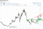 Und ab diesem Punkt könnte es entsprechend wieder sehr eng werden für den HUI und auch für Gold! Wie skizziert, droht dann erneut eine größere Gegenbewegung zurück auf ca. 250 bis 200 Punkte!
