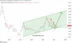 Im Wochen-Chart ist damit jedoch chartechnisch nicht allzu viel passiert. Der Pullback an der besagten oberen Keillinie deutet klar darauf hin, dass wir uns noch immer in der finalen e-Welle abwärts befinden. Deren Ziel liegt auch weiterhin auf dem Niveau der grünen Unterstützungszone zwischen ca. 226 und 209 Punkten. Dieser Bereich sollte in den kommenden Wochen noch in irgendeiner Form angesteuert, ehe dann von dort aus die skizzierte neue Trendwelle in Richtung 400er-Marke starten könnte.