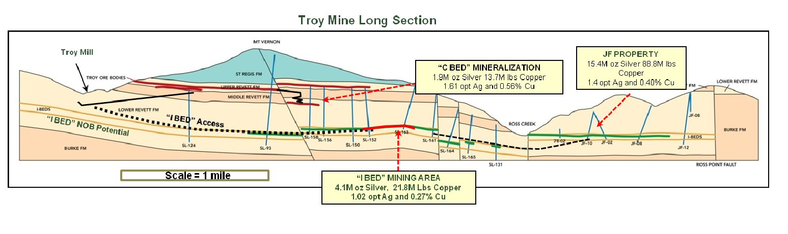 In addition to ongoing drilling both below and adjacent to the Troy Mine, we are in the process of re-assaying and re-logging of old core at the JF property. We are currently drilling new holes on the JF property and plan to report updated results at year end. Geophysical survey work completed south of the Troy Mine has also identified anomalous areas for future drilling.